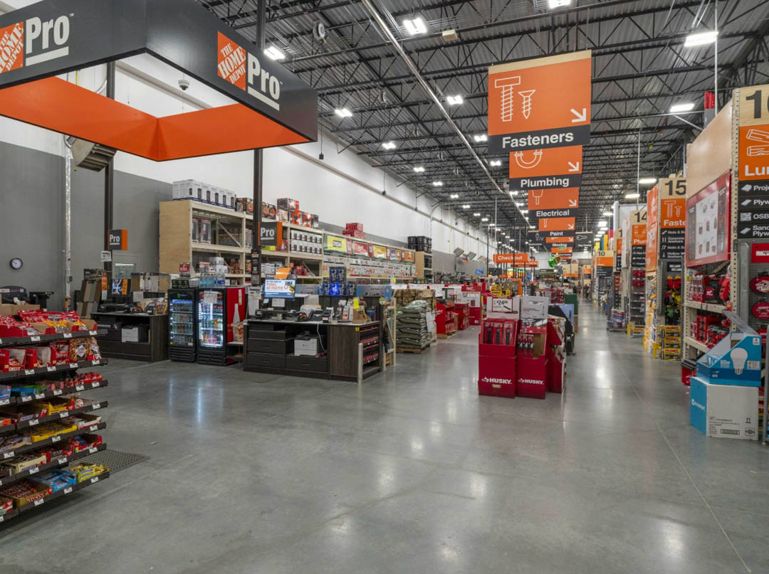 Home Depot in Charlottesville, VA is a 138,000-square-foot retail and warehouse facility serving homeowners and professional contractors. The building includes a large sales floor and dedicated storage and work areas, designed to make inventory and operations easy to manage.